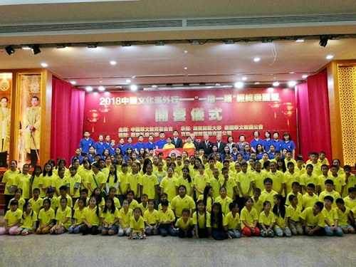 (通讯员 唐伊亮)3月22日上午,由中国华文教育基金会主办,湖南师范大学和泰国华文教师公会共同承办,泰国曼谷孔堤公学协办,经纬置地有限公司资助的“2018中国文化海外行——‘一带一路’经纬泰国营”开营仪式在泰国首都曼谷孔堤公学隆重举行。泰国华文教师公会主席罗宗正、曼谷孔堤公学主席林炎源,中国华文教育基金会项目一部主管辛超,湖南师范大学bt365提款到账时间那么长办公室主任唐伊亮及授课教师姜松荣、王光辉、张英、黄泽亮和研究生曲歌,曼谷当地部分侨领,以及孔堤公学师生、家长共200余人出席开营仪式。